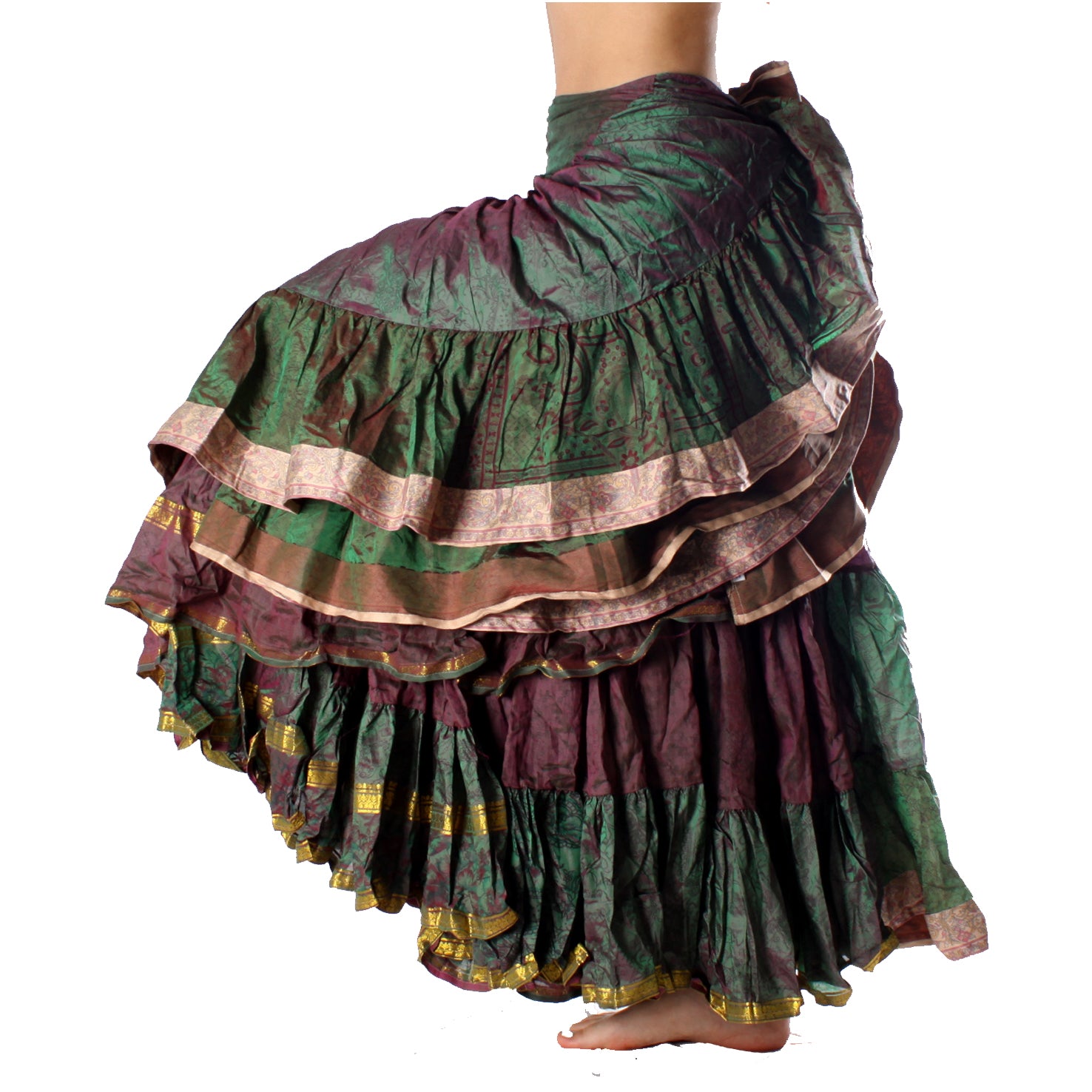 Cada falda está confeccionada a partir de saris de seda que vivieron una primera vida en la cotidianidad de mujeres en India. En Blacktup®, les damos una segunda vida con alma danzante, en colaboración con nuestro equipo en India y con dedicación artesanal.