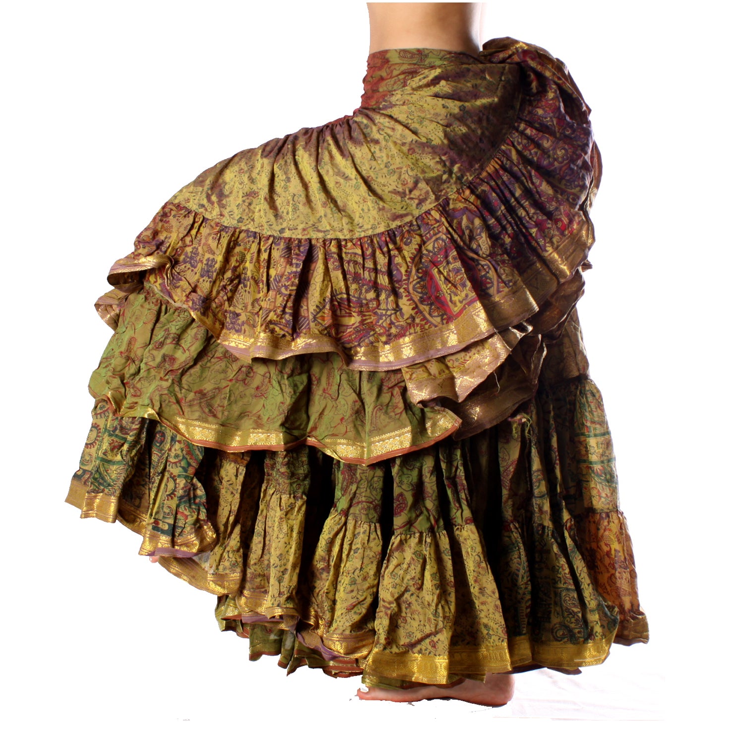 Cada falda está confeccionada a partir de saris de seda que vivieron una primera vida en la cotidianidad de mujeres en India. En Blacktup®, les damos una segunda vida con alma danzante, en colaboración con nuestro equipo en India y con dedicación artesanal.